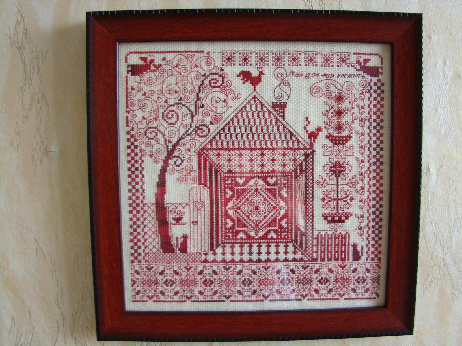 Как всегда,случайно,в инете наткнулась на этот корейский дезайн фирмы DOME.Увидела и заболела!Девочки создали несколько совместников по вышивки Зелёной деревушки(ещё встречала название"Зелёная улица").Пересмотрела кучу блогов.Облизывалась-облизывалась и ЗАГОРЕЛАСЬ!Набор стоит недёшево.Многие девочки вышивают методом подбора.Размер работы 899х150 крестиков. Проект долгосрочный.Хочется ,чтобы материалы были хорошего качества.Мои запасы мулине не велики.Цена DMC в интернет магазине,конечно,дешевле.Но я прочла,что DMC сейчас китайского производства.По-этому купить 69 цветов DMC(некоторые цвета по 2-4 моточка),канва Аида-14(163х27),да ещё распечатать 24 листа цветной схемы-влетаешь в большую копейку.Получается дешевле чем набор,но не намного.Пока я считала как и на чём сэкономить.Мой любимый муж решил облегчить мои" страдания"и через неделю я держала в руках родной набор от DOME.УРА!!!Это мой первый совместный прект на форуме