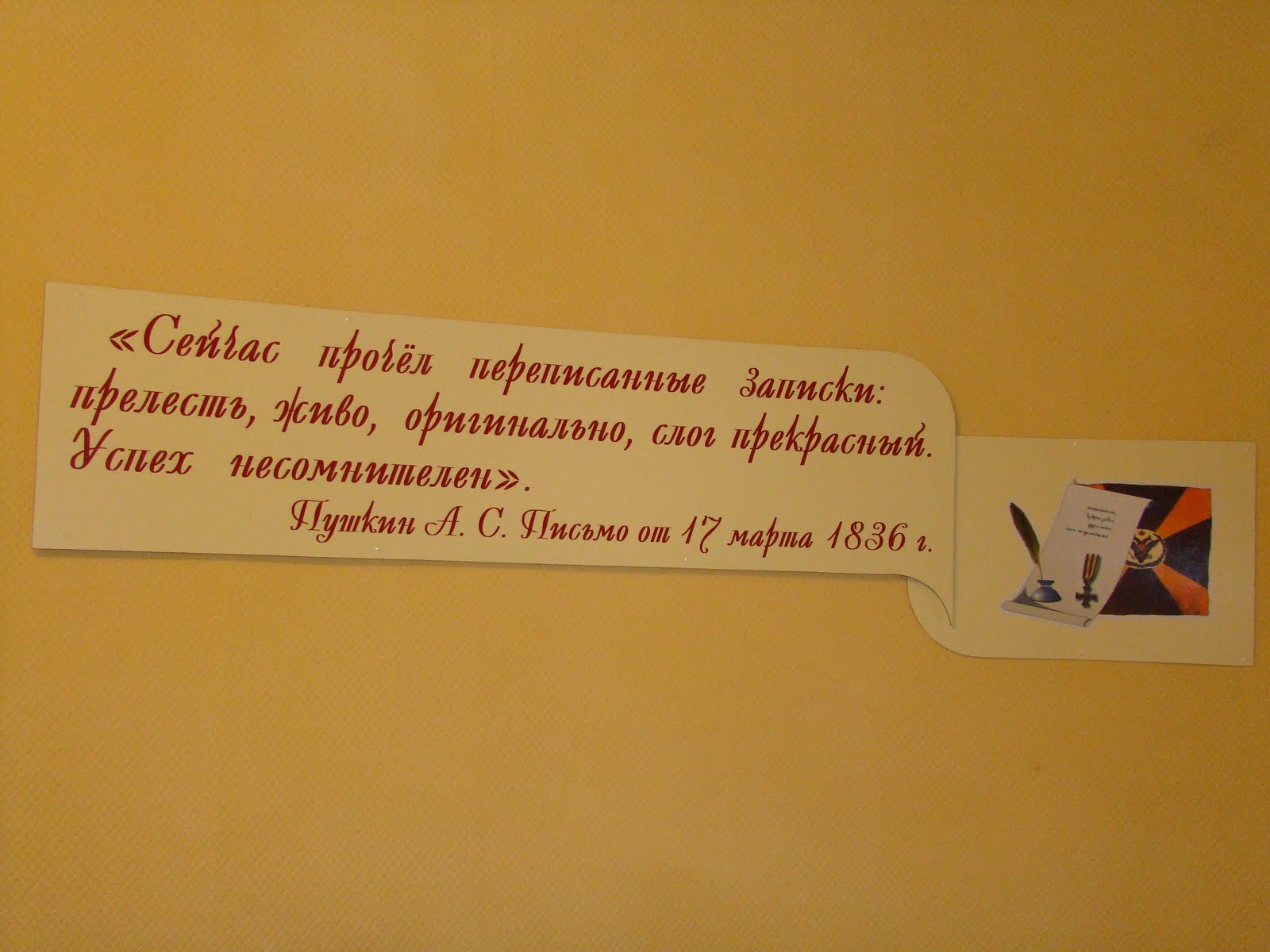 В отставке Н.А. начинает писать.Её брат на коротке знакомый с Пушкиным,показывает ему эти записки.Великий Пушкин благословил"нежные пальчики,некогда сжимавшие окровавленную рукоять уланской сабли"на литературный труд.В 1836 г.в журнале "Современник" появился отрывок из её "Записок"с предисловием самого Пушкина.Но при этом поэт раскрывает инкогнито Н.А.,подписав, "записки кавалерист-девицы".Н.А. долго обижалась,т.к.слово данное царю,сродни клятве данной богу.