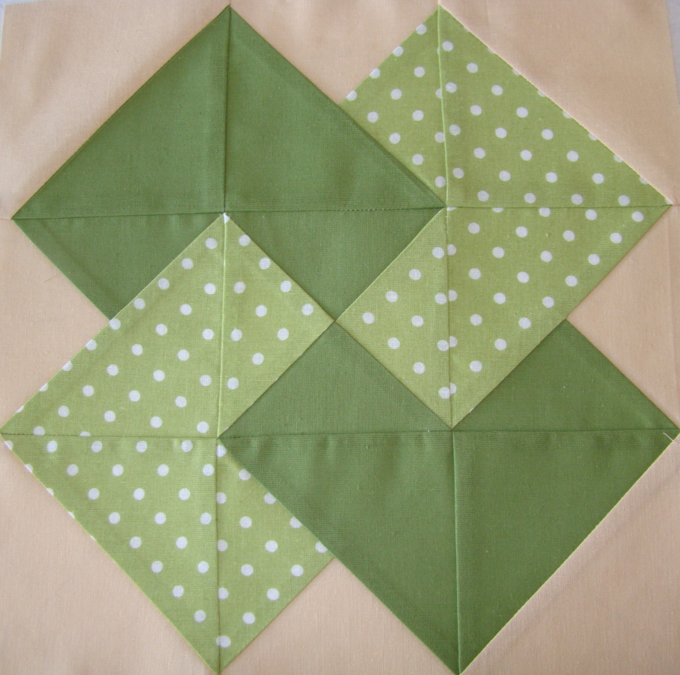 Первый блок июня-"Annies Syoce",что в переводе звучит,как "Выбор Энни".Здесь большой блок состоит из 16-ти маленьких квадратов.Почему то чем дальше шьём,тем мне труднее.Первый блок сшился за 15 минут.Понимаю,что не хватает спец.приспособлений-дискового ножа и хорошей линейки.Необходимо более тщательно вымерять квадратики в дюймах и также точно нарезать их.Миллиметр туда-сюда и проблемы со стыковкой углов.Сделала заказ в интернет магазине,жду ножичек.А может,как в поговорке-плохому танцору..?