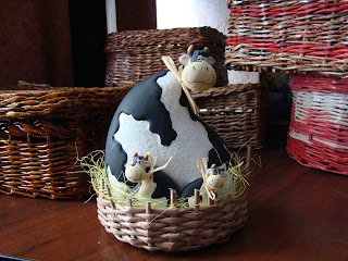 В магазине "Красный куб" были дни сумасшедшей распродажи.За 44 рубля(!!!!!!!) купила маму Корову с двумя дочками.Мимо такой симпатиШной семейки не возможно было пройти мимо.Моя сестра -телец по гороскопу и у неё две дочери.Сплела для семейки маленькое уютное гнёздышко и соломку подстелила.Хочу,чтобы девочки мои жили дружно между собой!На заднем плане все мои плетёные подарки на Алтай.Не сфотографировала коробку-сундучок для сына.Как забыла?!Очень торопилась закончить.А она получилась самая аккуратная,потому что пятая по счёту.Навык приходит во время учения-мучения.Завтра в путь!Едем своим ходом на Алтай,в город Барнаул.Целый месяц отдыха.Ура!!!!Увижу маму и всех-всех!!!!До встречи!