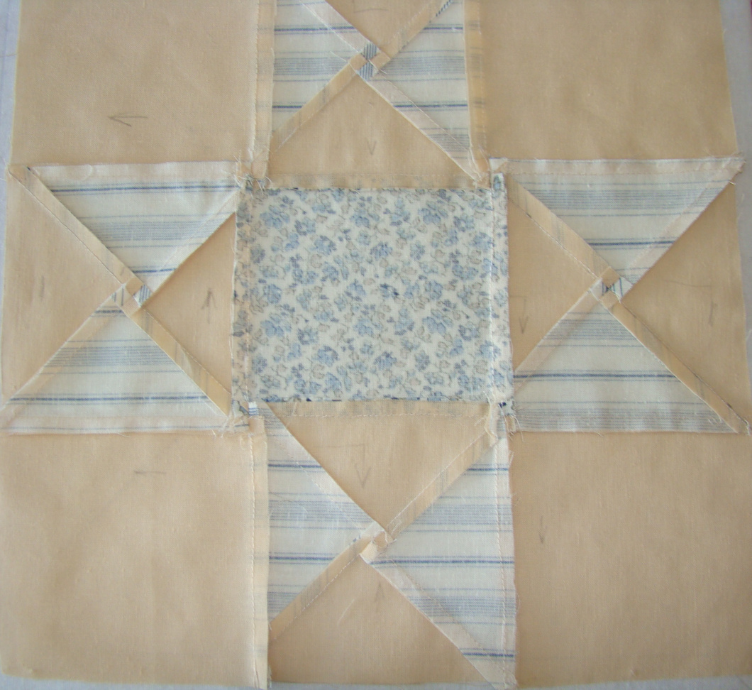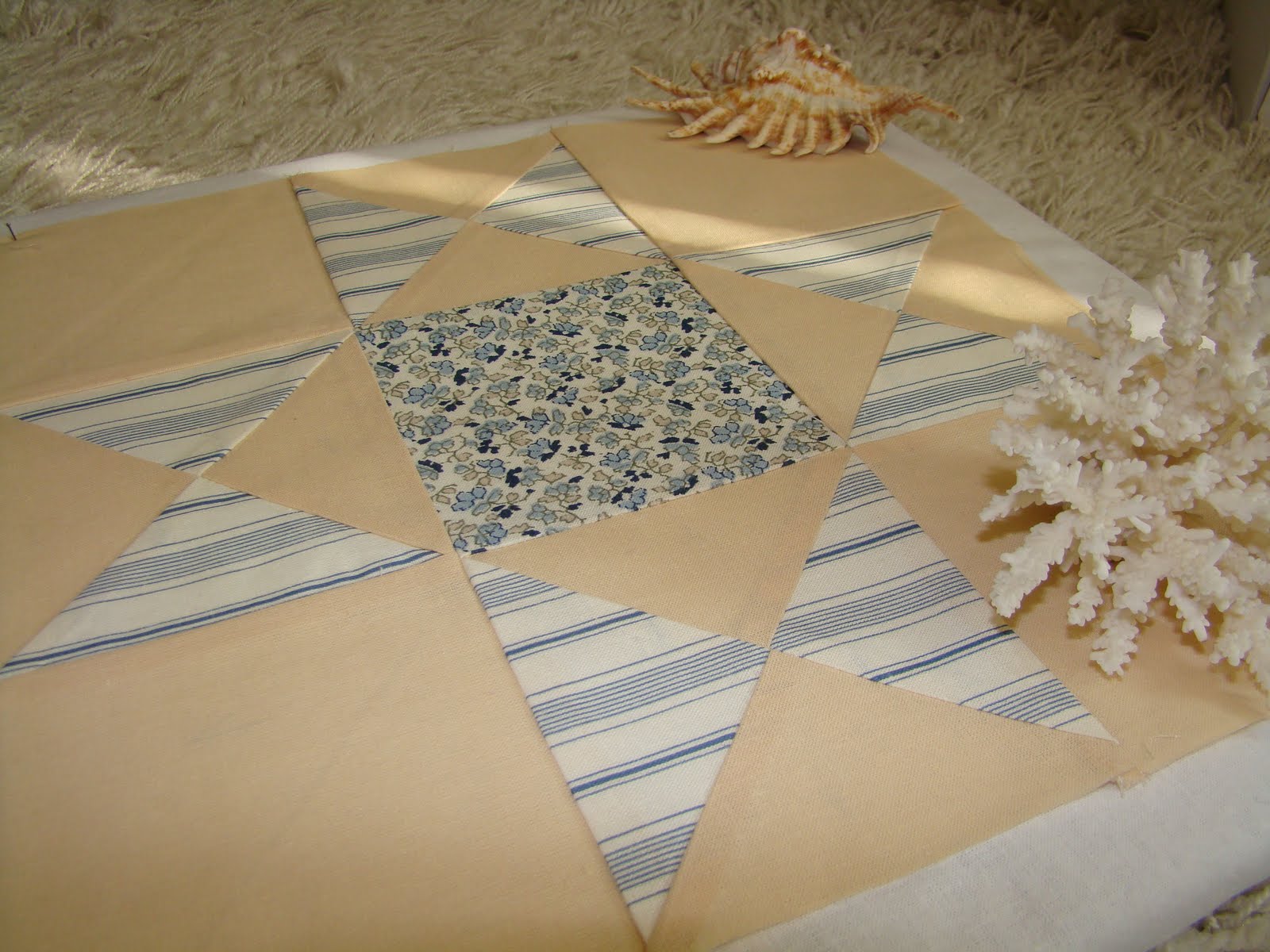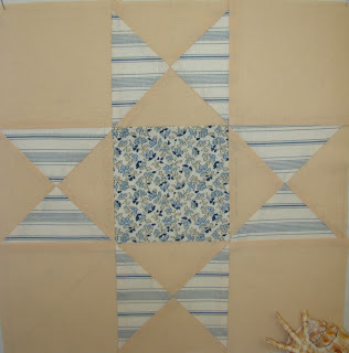 Второй блок июля-Ohio Star(Звезда Огайо).Видимо, из-за бело-голубой полосатой ткани у меня появилась ассоциация с морской звездой.