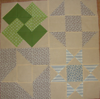 Четыре блока из двадцати четырёх.Сколько впереди интересного!Жаль,что я не представляла с самого начала конечный результат..Очень резкий контраст получается.Теперь буду "разбавлять" бежево-песочную гамму синими и зелёными квадратами.