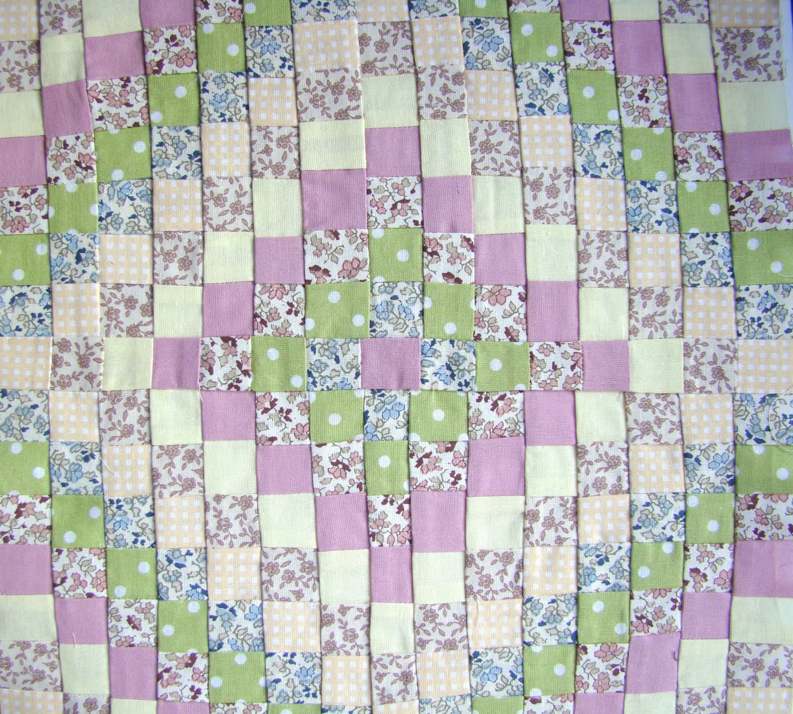 Блок" Барджелло".На первый взгляд ничего трудного : полоски ткани сшить в одно полотно,нарезать его на новые полоски и снова сшить.Но чем мельче детали,тем больше погрешность я делаю.Готовый блок получился больше чем 30 на 30.Квадратики вышли разной величины,хотя в машинке есть специальная строчка-6 мл.Не захотела пороть и исправлять.Терпения не хватило.Может быть позже переделаю.