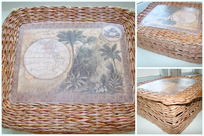 Для плетения трубочек использовала светлый край рекламных газет.Сначала покрасила их морилкой,а затем уже плела.Для оформления крышки использовала рисовую бумагу.Когда увидела изображение старой карты,сразу понял,то что надо!