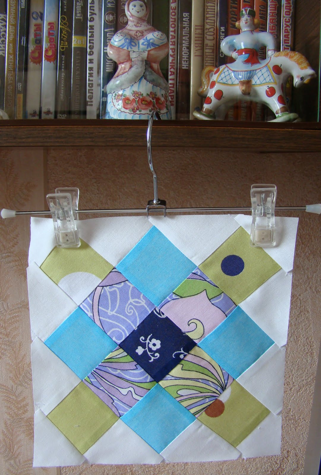 Между делом:утром до работы и вечером после таковой(благо до неё 10 минут неспешным шагом) собрала 20 блоков "Бабулиных лоскутков".Для утилизации остатков тканек- незаменимый способ шитья.Разложила на полу,полюбовалась,получила от мужа порцию хвалебных песен(надеюсь, искренних!)и побежала сшивать всю эту неземную красоту в единое целое.