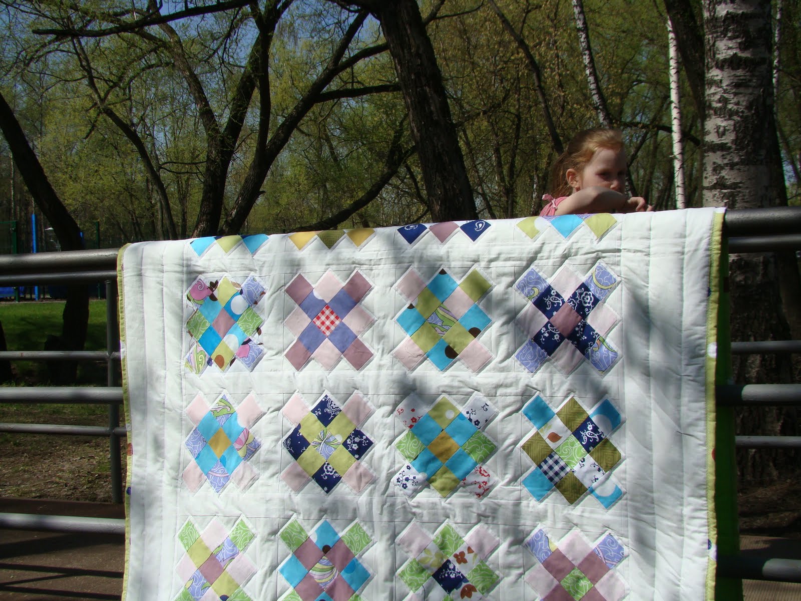 Готово одеялко для моей старшей племянницы Алёны.Ей в августе исполнится 35 лет,маленький юбилей.Готовлю подарок заранее.Размер одеяла 140 на190см.Сшила 24 блока"Бабулины лоскутки" 20 на 20см.И что очень приятно,не пришлось докупать новые ткани,использовала остатки от трёх предыдущих одеял.На кайму( 10см.) и разделительные полосы( 4,5см.) ушло около 1,5 м. белой бязи.Наполнитель-синтепон.