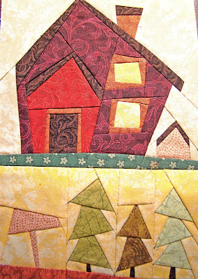 Девочки на Дублирине начали совместный проект"Кривая деревенька".Такие смешные домики у них получаются,что мне страсть как захотелось изобразить нечто подобное.Блоки шьются по бумаге.Раньше,когда видела такие мелкие детальки,всё думала,какая же ювелирная работа и как они (Мастерицы) это делают.Спасибо, Ирам-научили!И правду люди говорят:"Глаза бояться-руки делают".Шъю на руках(машинка в ремонте).Медленно продвигается" строительство",зато пороть при ошибках быстрее.Вот один из канфузов-вместо светлого фона пришила цветной клочок.Так распорола в пять секунд,не то что машинный шов в 1.5мм.